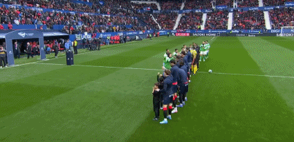双方球员步入球场,比赛即将打响