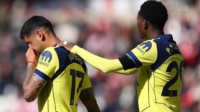 事情发生在桑德兰的阳光里,却透着一股寒意。热刺0-1落后,罗梅罗第65分钟因伤离场,眼泪没擦干就从德泽尔比身边走过。镜头捕捉到这个瞬间时,后者双手抱头的姿势被英媒形容为"痛苦的注视"。