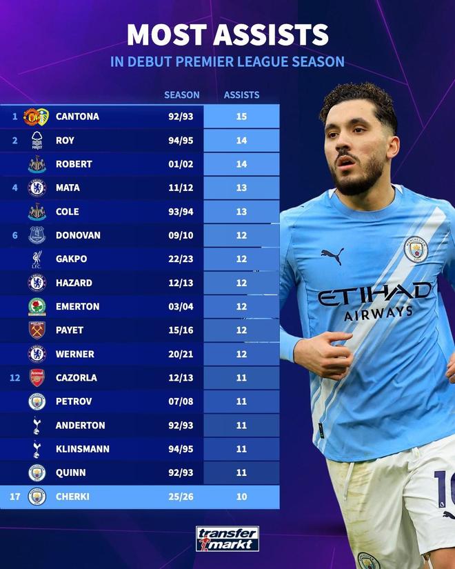 英超处子赛季助攻榜:坎通纳15次居首,谢尔基10次暂列第17