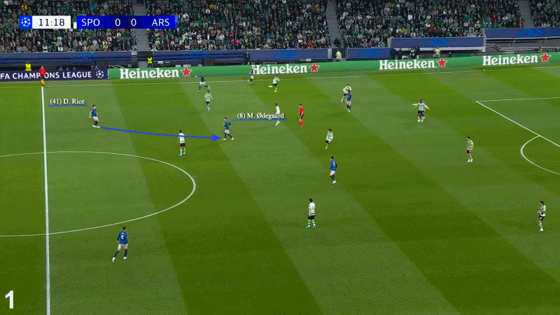 下图显示赖斯和厄德高之间的一次来回传球,在战胜葡萄牙体育后受到了很多关注,但这种不愿转身面向对方的态度并不仅仅来自阿森纳的队长。