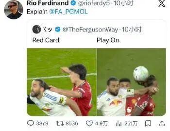 里奥社媒转发利马对勒温犯规(红牌)和勒温肘击约罗(继续比赛)的对比照,并要求英超裁判联盟解释