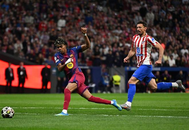 随着主裁判一声哨响,巴塞罗那就反客为主,在大都会球场压着马竞猛攻,第1分钟亚马尔就单刀赴会,杀到主队禁区完成了一脚极具威胁的射门,但被穆索神扑化解,不过仅仅3分钟之后,亚马尔就弥补了遗憾,朗格莱后场传球失误,费兰送出直塞,助攻亚马尔单刀破门,帮助巴萨取得了1-0的梦幻开局。