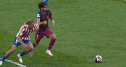 第42分钟,亚马尔推进直塞,费兰接球转身打门被挡