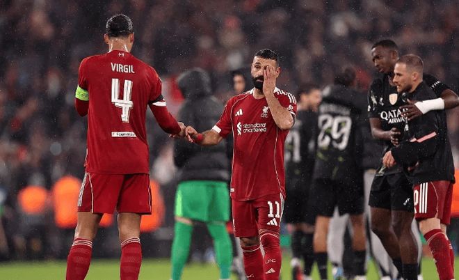 利物浦主场0-2不敌巴黎圣日耳曼,两回合总比分0-4惨遭横扫,连续第二年被同一支法甲球队踢出欧冠——而看台上,32岁的萨拉赫坐在替补席,眼神空洞。这很可能是他红军生涯的最后一场欧冠。