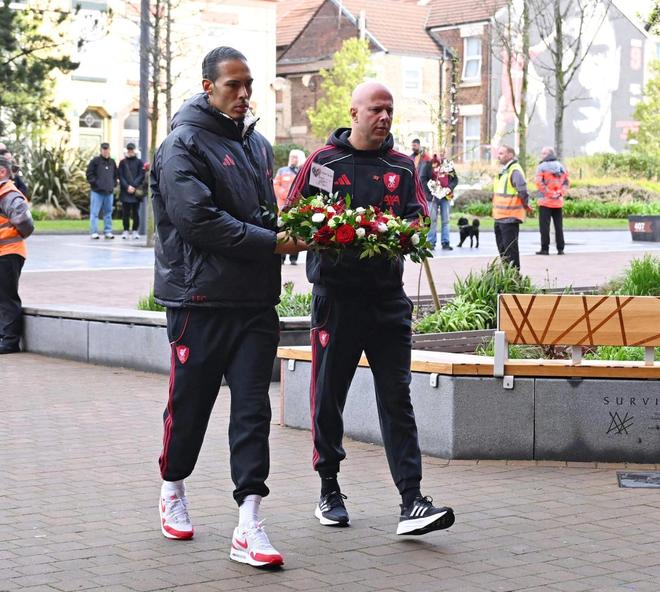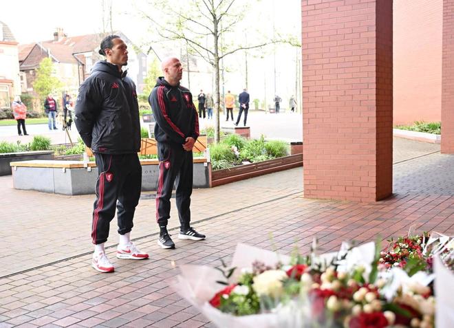 为表达哀思,利物浦一线队、女队以及U21、U18梯队的主教练和队长范戴克今日前往安菲尔德的希尔斯堡纪念碑献上花圈。俱乐部高层也参与其中,包括首席执行官比利-霍根、传奇球星达格利什爵士,以及俱乐部大使伊恩-拉什和娜塔莎-道伊。
