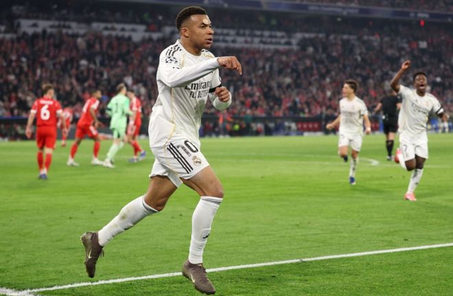 第29分钟,皇马再次进球!居莱尔任意球直接射门,皮球越过人墙,钻入球门右上角!居莱尔竟然梅开二度。第38分钟,凯恩在禁区内推射破门,再次扳平比分。3分钟后,维尼修斯射门击中门框弹出。第42分钟,皇马再次领先。维尼修斯突入禁区后送出横传。姆巴佩后插上,得球后单刀推射破门。半场结束,皇马3-2领先拜仁。