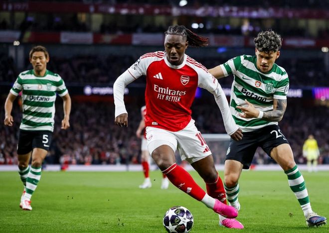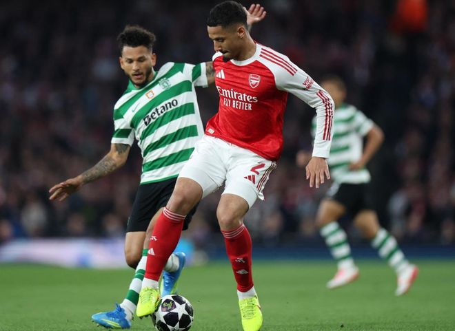 第39分钟,苏比门迪在禁区左侧底线附近小角度射门。门将轻松把球摘下。4分钟后,卡塔莫在禁区右侧后插上推射远角,皮球击中立柱弹了出去。阿森纳逃过一劫。半场结束,阿森纳0-0葡萄牙体育。