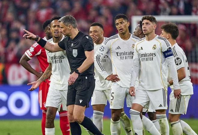赛后,不甘心出局的维尼修斯、贝林厄姆、居莱尔等皇马球员,愤怒追着本场裁判组成员讨说法。