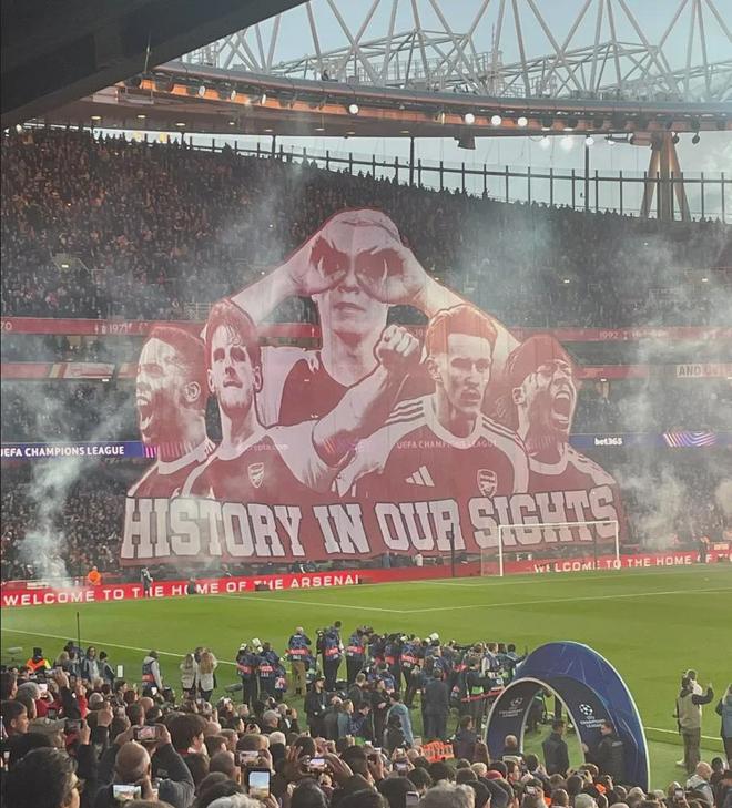 阿森纳球迷赛前制作展示的巨大tifo:见证历史。