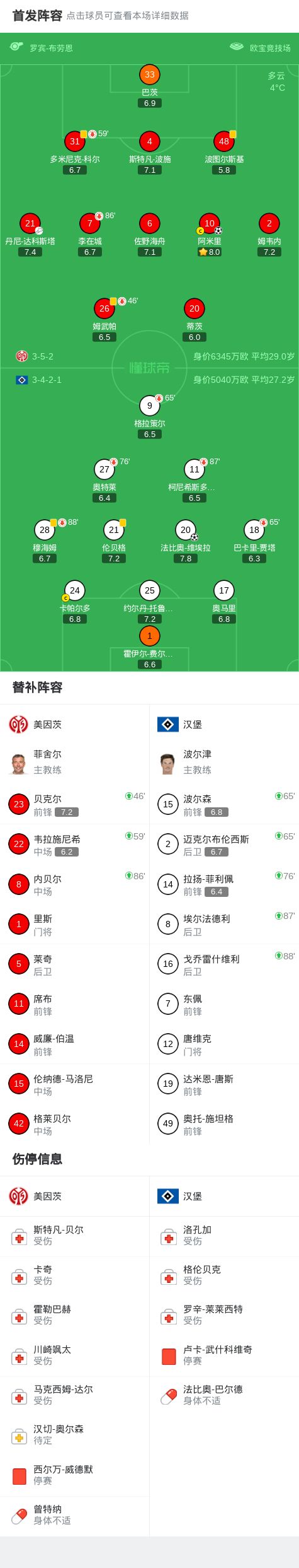 因为交通问题,美因茨和汉堡的比赛被推迟10分钟