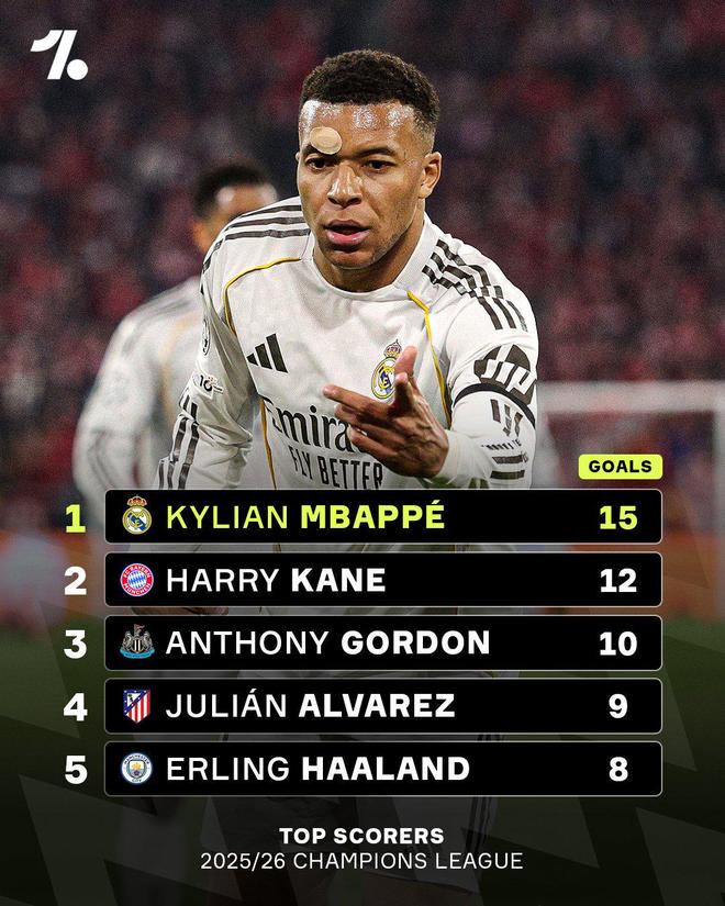 2025/26赛季欧冠金靴竞争,比想象中有趣得多。