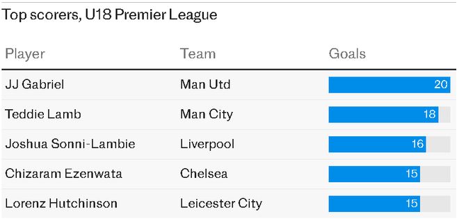 最终,加布里埃尔梅开二度,帮助曼联5-0大胜米堡。从此,他的进球势头就没有停止过。上周六,曼联U18以2-0完胜利兹联青年队,他也攻入一球,排名英超U18联赛射手榜第一,力压一众年龄比他更大的对手。