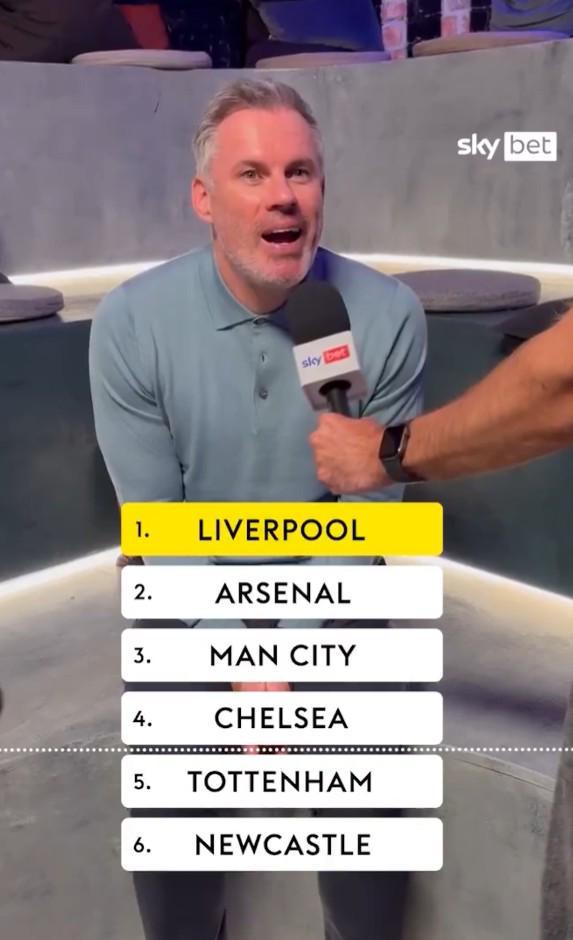 赛季开打前,卡拉格在节目中给出最终排名预测:利物浦成功卫冕英超冠军,阿森纳、曼城、切尔西分列二至四位;热刺位居第五,纽卡第六,曼联则仅排在第九位。