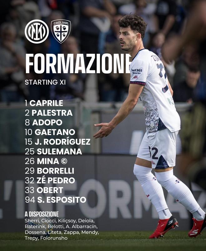 北京时间4月18日02:45,意甲第33轮的一场较量。国米坐镇主场,迎战卡利亚里。赛前,双方的阵容公布如下:
