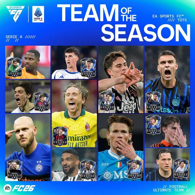 FC26意甲赛季最佳阵容提名:劳塔罗、伊尔迪兹、莫德里奇领衔