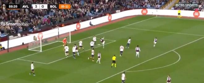 比赛第16分钟,沃特金斯破门时,博洛尼亚的防线还在原地调整站位。这是一次典型的维拉式进攻:禁区边缘的快速传递,左路肋部突然撕开缺口,沃特金斯接球推射远角——1-0,总比分4-1。