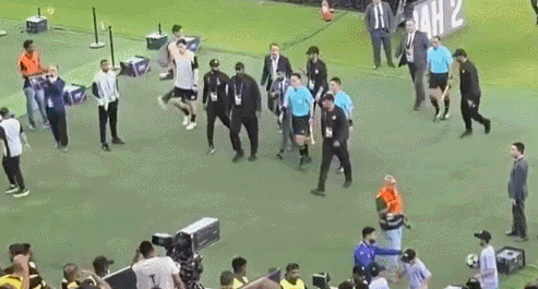 这个判罚引起主队的不满。终场哨响后,就在马宁悠哉悠哉在中圈弧漫步的时候,突然感觉背后一凉,有人冲撞了一下。马宁一个回头,反身就掏出红牌1张,亮向这位吉达联合的20号球员(下图)。不愧是“卡牌大师”!第一反应就毫不犹豫地出牌。