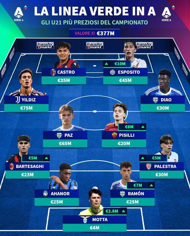 北京时间4月22日,德转统计出了意甲身价最高的U21球员阵容,凯南-伊尔迪兹、尼科-帕斯以及皮奥-埃斯波西托领衔。