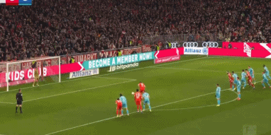 上半场补时第1分钟,凯恩带球长驱直入分球,迪亚斯斜射破门,3比1!