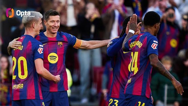 根据Opta的统计,在本场比赛莱万破门之后,巴萨也成为了本赛季至今欧洲五大联赛中第二支拥有至少两名球员(费兰-托雷斯12球、莱万10球)联赛进球数上双的球队。