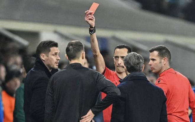 在本塞拜尼被罚下后,主裁判又接到助理裁判的提示,随即走向多特蒙德替补席,并向对判罚难以接受的施洛特贝克直接出示红牌。
