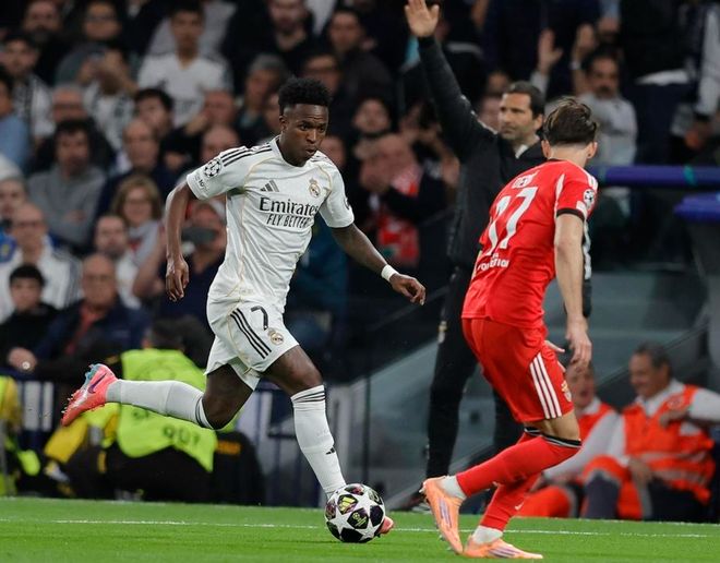 这场比赛皇马早早就丢球了。拉法-席尔瓦在第15分钟门前抓住机会补射破门。皇马之所以丢球,是因为阿森西奥的铲球出现失误,把球铲向自家球门。库尔图瓦虽然避免乌龙球,但没能阻止拉法-席尔瓦的补射。不过,很快楚阿梅尼就帮助皇马扳平了比分。本菲卡此后多次创造机会,但无法再次进球。皇马在第80分钟由维尼修斯一锤定音,打进绝杀进球。维尼修斯连续5场比赛取得进球,5场轰入6球。最终,皇马2-1击败本菲卡,两回合总比分3-1晋级16强!