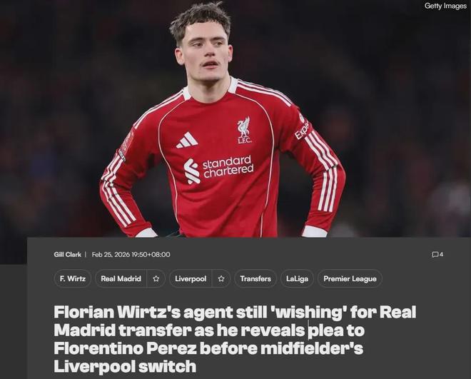 维尔茨的经纪人斯特鲁特近日接受图片报采访时表示,这名球星在加盟利物浦之前,他曾联系阿隆索请求将自己的客户带到皇马,而且他依然希望维尔茨未来为皇马效力。