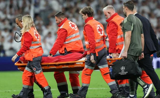 这一幕发生在比赛第73分钟,皇马中卫阿森西奥和队友卡马文加在争顶时撞在一起。这次碰撞导致阿森西奥重伤,被担架抬出场外,并且戴上了颈托固定。最新消息显示,阿森西奥已被救护车送往医院,接受移动重症监护检查,情况危急。