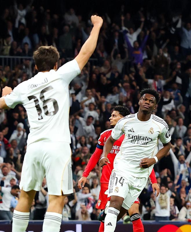 大比分落后,本菲卡试图通过大举压上制造扳平机会,阿韦罗亚务实的执行反击战术;第80分钟,阿拉巴后场提前预判卡位头球摆渡,巴尔韦德中圈斜塞打穿对手防线,维尼修斯长途奔袭单刀低射远角锁定胜局,2:1,总比分3:1!维尼修斯两回合都有进球,算上联赛已经是连续5场比赛进球。