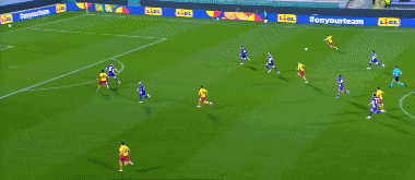 第45+3分钟,马祖雷克兜射,皮球折射入网,佛罗伦萨0-2雅盖隆