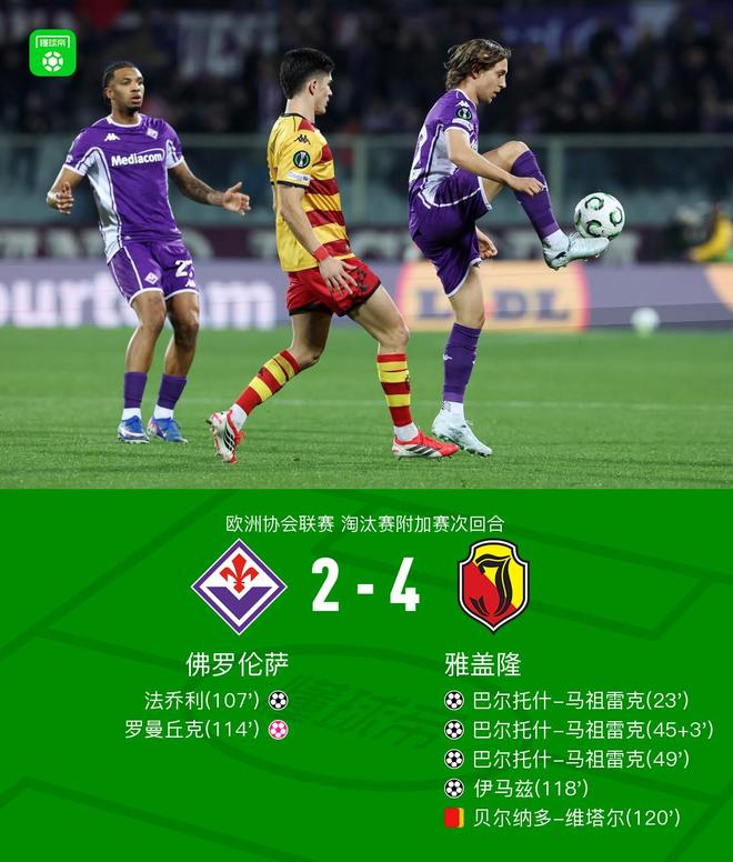 第118分钟,伊马兹远射破门,帮助雅盖隆扳回一球,佛罗伦萨2-4雅盖隆