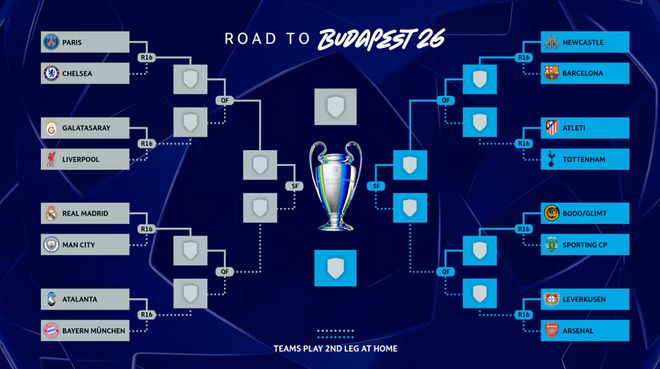 阿森纳可谓抽到好签,先是在16强战里对阵勒沃库森,如果取胜的话将在八强战里对阵博德闪耀与葡萄牙体育之间的胜者。巴萨则首先对阵纽卡斯尔,如果取胜的话将在八强战里对阵马竞、热刺之间的胜者。