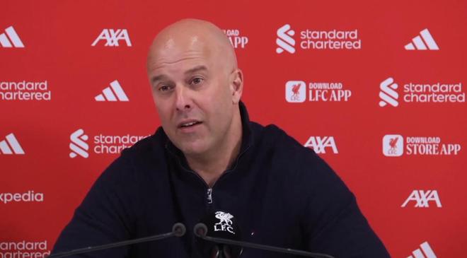 英超第28轮,利物浦主场5-2击败西汉姆联,赛后,红军主帅斯洛特出席新闻发布会接受媒体提问。