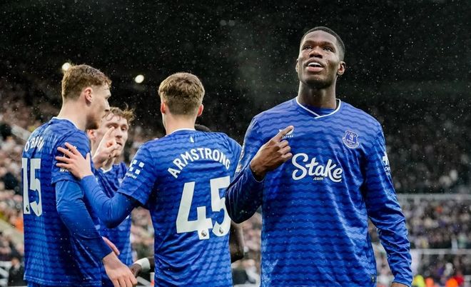 比赛刚开始不久,恩迪亚耶禁区外起脚远射,踢高了。第19分钟,埃弗顿反客为主,取得了进球!詹姆斯-加纳开出角球,布兰斯韦特抢点头球攻门,球进了!第32分钟,纽卡斯尔联扳平比分。拉姆齐在禁区前沿起脚远射,皮球被挡了一下发生折射钻入球门。只过了2分钟,埃弗顿再次领先。波普扑救失误,贝托跟上补射破门。半场结束,纽卡斯尔联1-2落后。