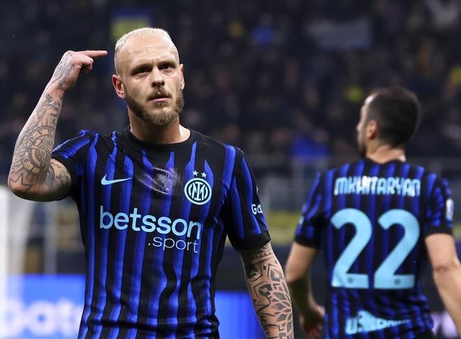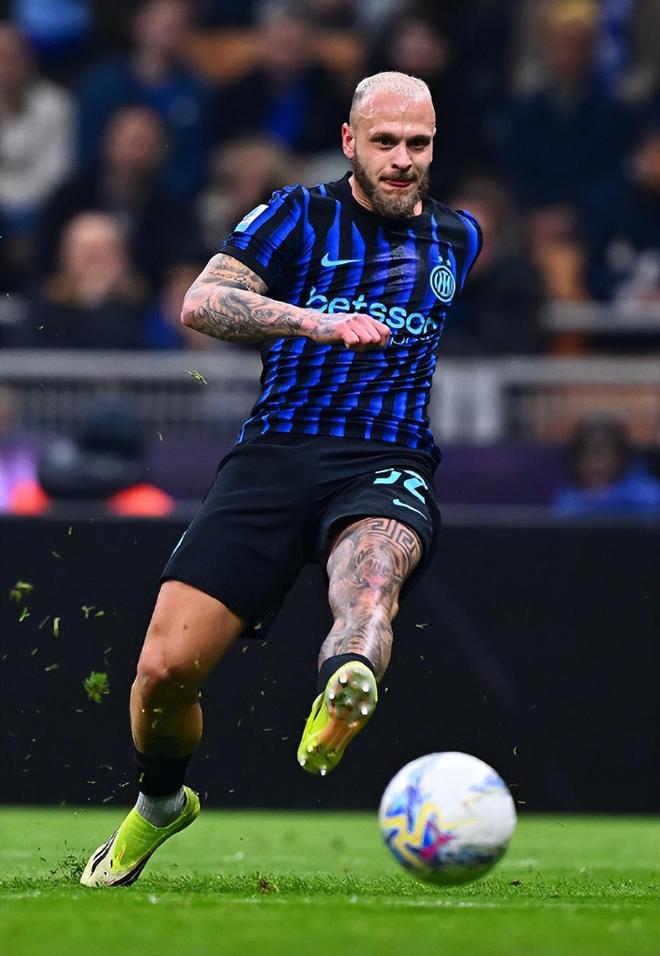 第32分钟,国米打出精彩配合,姆希塔良观察后将球吊入禁区,迪马尔科后排插上不停球小角度外脚背捅射远角破门,1:0!迪马尔科连续6场比赛参与进球,期间他为国米贡献2粒进球和8次助攻,是21年来第一位完成此成就的后卫球员;赛季至今他也已经收获了7球15助攻。
