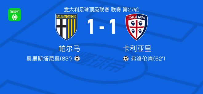 帕尔马1-1卡利亚里,弗洛伦肖破僵,奥里斯塔尼奥扳平