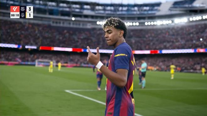 第69分钟,两队正在胶着之时,佩德里中场送出一脚手术刀直塞,直接穿透比利亚雷亚尔的整条防线,亚马尔单刀再次破门,3:1!扩大比分后,弗里克将拉菲尼亚、亚马尔换下,赢得了现场球迷的掌声。