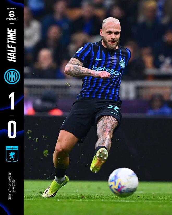 上半场比赛结束,我们暂时1比0领先于热那亚。