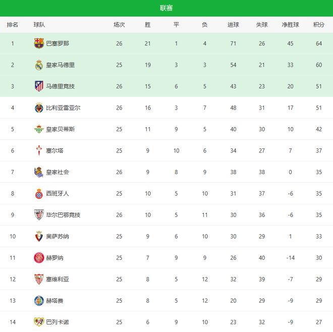 4-1大胜!1-0绝杀!西甲最新积分榜:巴萨甩开皇马,马竞反超黄潜
