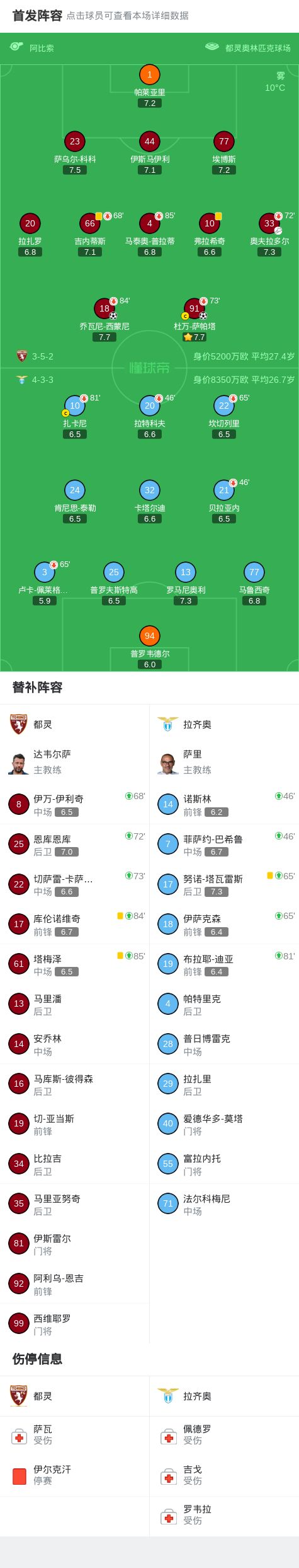 都灵vs拉齐奥:乔瓦尼-西蒙尼、杜万-萨帕塔首发,罗马尼奥利、扎卡尼出战