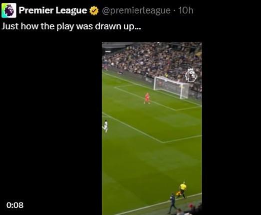 据报道,在热刺1-2负于富勒姆之后,英超官方账号在社交媒体上发布了一段视频,视频中,维卡里奥将任意球开出了界外,并配文“正如计划中的那样”和“维卡里奥的精彩任意球”,还附上了一个笑哭的表情。