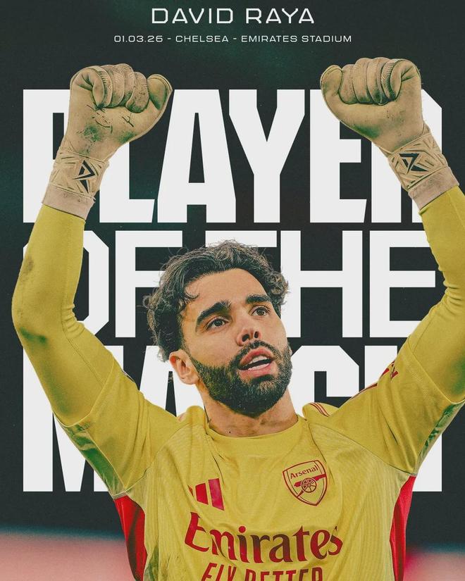 拉亚被阿森纳官方票选为了本场比赛最佳球员!