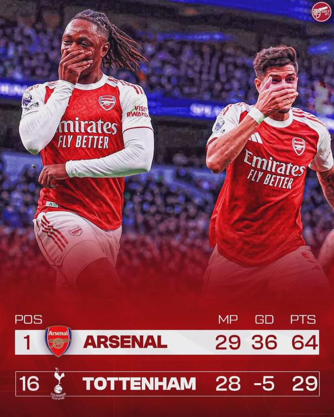 虽然阿森纳其实最近几年早就不把热刺放在眼里,更不可能被热刺反超,但这一刻对每个枪迷来说仍然值得庆祝,力压死敌,北伦敦就是红色的!不要不珍惜现在的成就,前几年也不是没有被热刺力压过,但此一时彼一时了!
