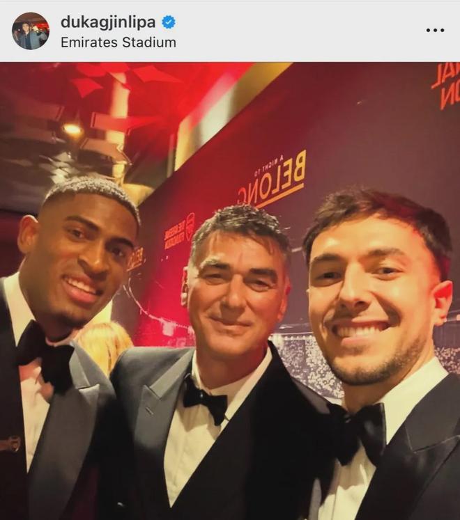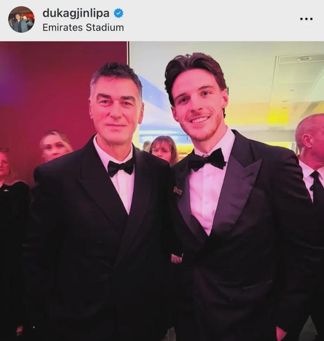 英国著名女歌手杜阿-利帕的父亲杜卡金-利帕参加了周四的阿森纳基金会慈善晚宴,并在IG上写道:永远的北伦敦!