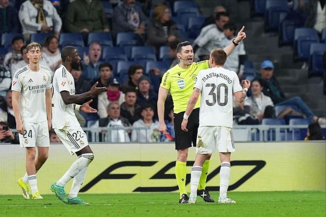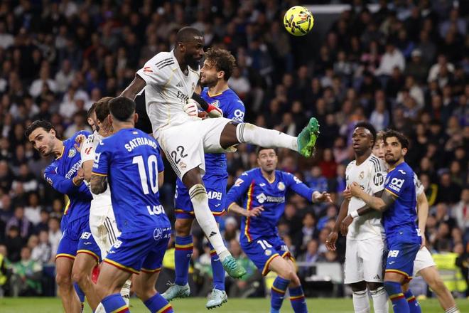 面对赫塔菲摆出的铁桶阵,皇马还未到久攻不下就已经心烦气躁。吕迪格第26分钟用膝盖顶已经倒在地上的里科,这个标准的红牌犯规竟然连VAR都没介入。
