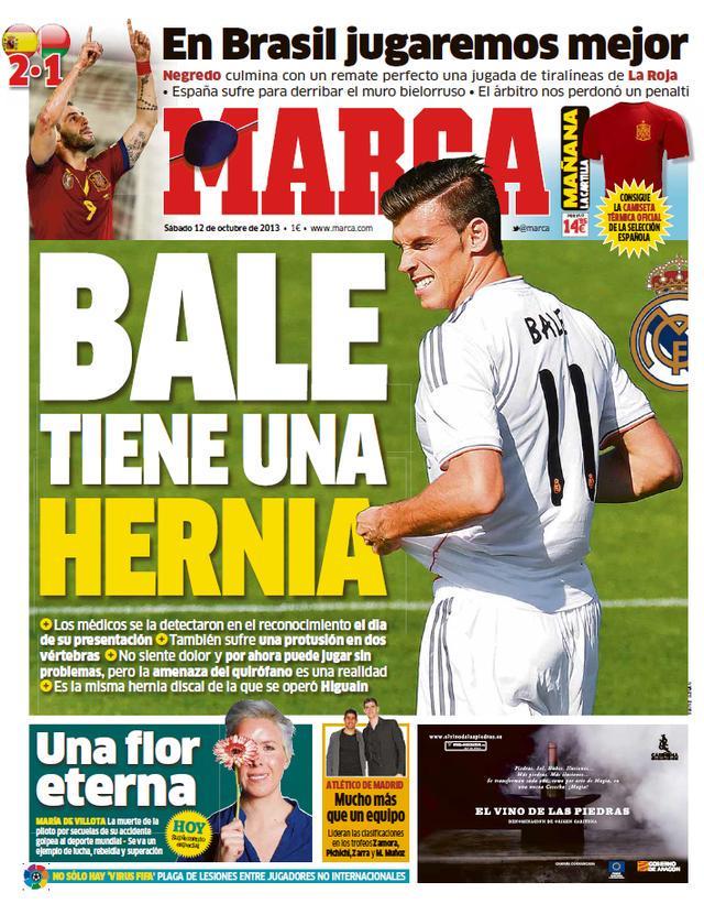 各位吃瓜老球迷一定还记得,2013年夏天“大圣”加雷斯·贝尔以天价空降伯纳乌。结果他前脚刚落地,西班牙《马卡报》后脚就在头版头条爆了个惊天大料:“贝尔有腰椎间盘突出!”