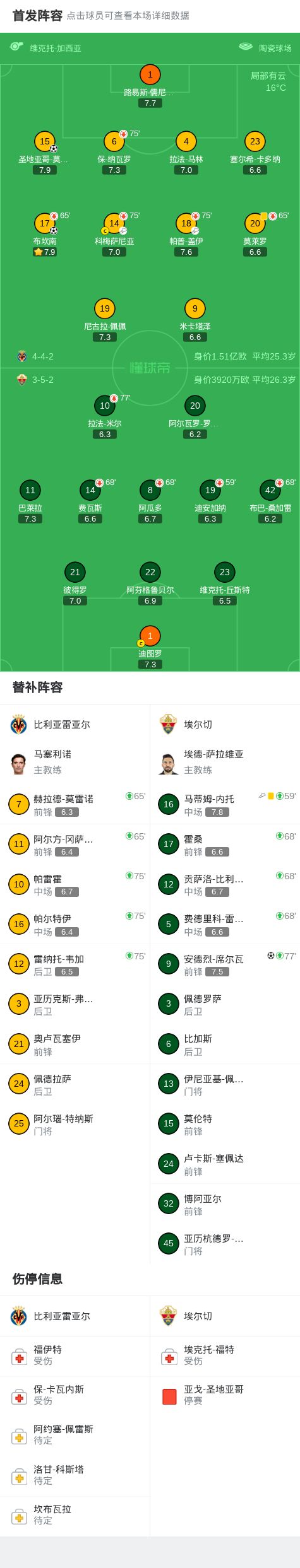 比利亚雷亚尔2-1埃尔切,圣地亚哥-莫里尼奥破门,布坎南建功