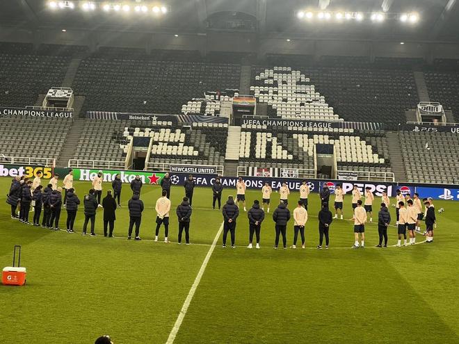 欧冠1/8决赛首回合客场对阵纽卡的前一天,巴萨全队在训练前为一年前去世的队医米尼亚罗默哀一分钟。