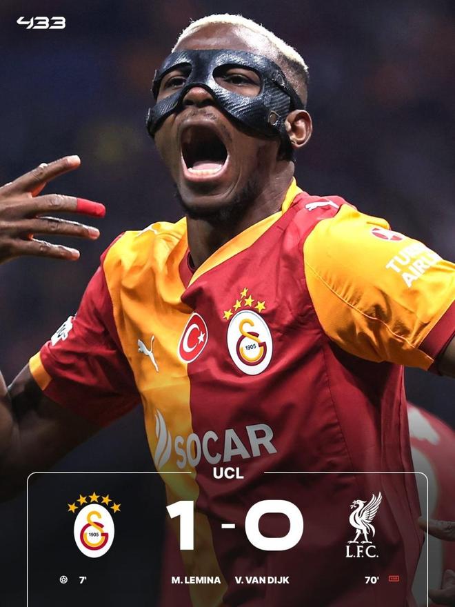 利物浦客场0-1不敌加拉塔萨雷。奥斯梅恩助攻勒米纳头球破门,维尔茨错失进球良机。奥斯梅恩打进一球,但是队友越位在先。随后利物浦也有一个进球,科纳特破门被判手球犯规在先,进球无效。