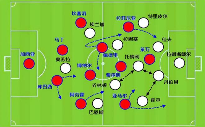 当时在阿劳霍没有回来的情况下,是拉菲尼亚补了右后卫的位置。需要特别注意的是,他俩其实是这支巴萨对抗和冲刺跑能力最强的球员。